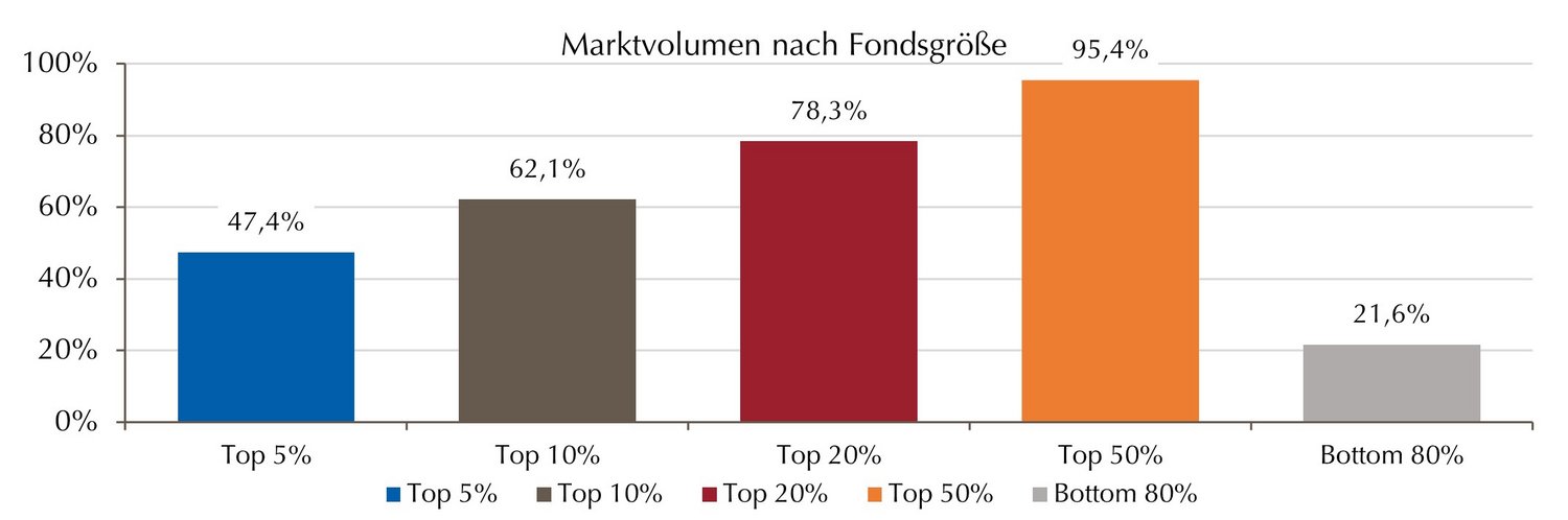 Auf die größten 5% der Fonds entfallen 47% des gesamten Marktvolumens