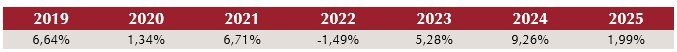 Die Jahresperformance 2025 bewegt sich am unteren Rand der vergangenen Jahre